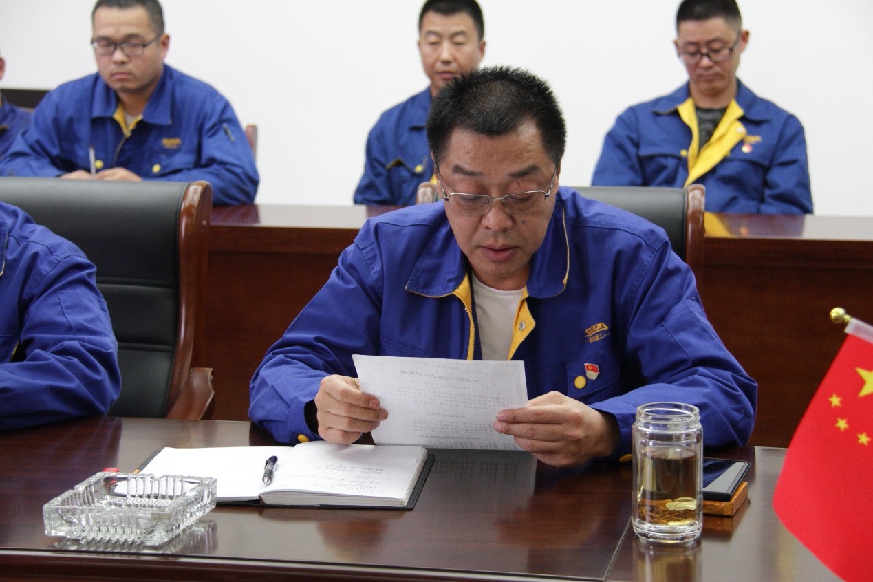 活动在庄严的《国歌》中拉开序幕,党委宣传委员张茂林同志带领全体党员重温入党誓词,并领学了《党章第一章:党员》。