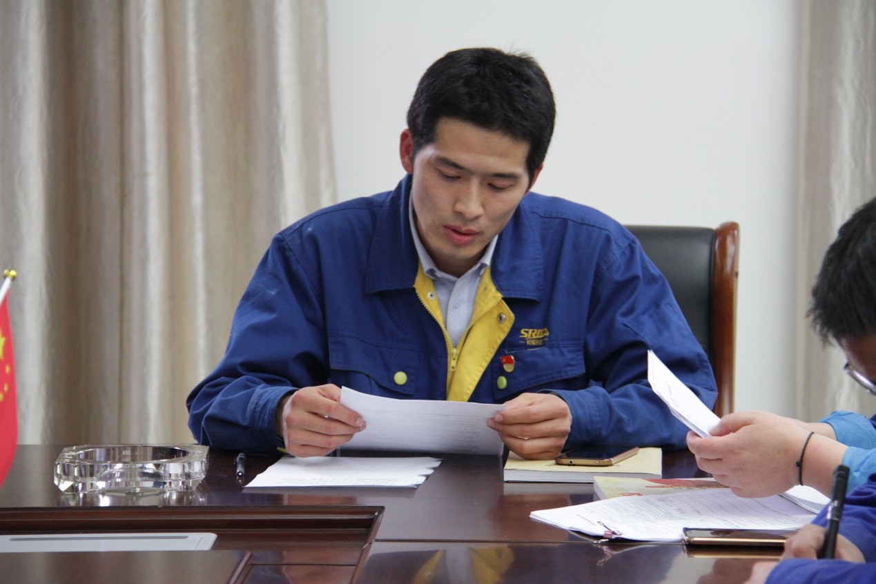 党委青工委员曾宏伟同志领学《青年在选择职业时的考虑》。