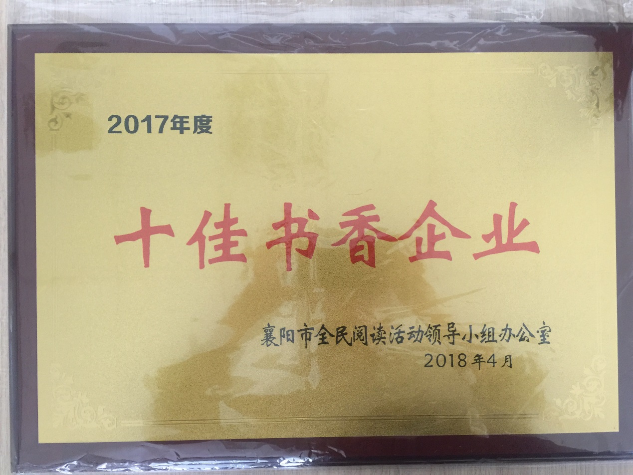 近日,从襄阳市全民阅读活动领导小组办公室传来好消息,WG网页版荣获2017年度“十佳书香企业”称号。